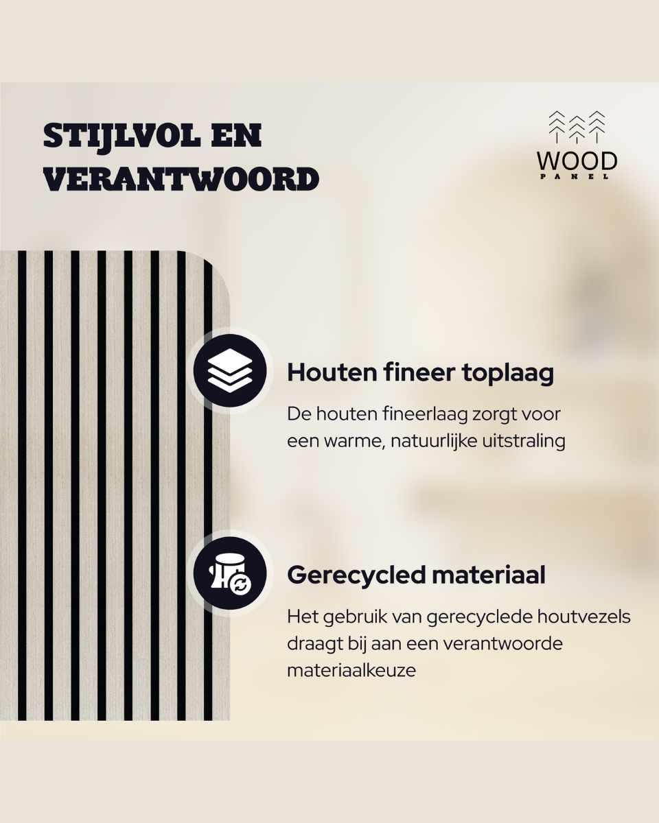 Naast zijn functionele voordelen heeft dit wandpaneel een stijlvol design dat uw interieur verrijkt. Het kan als decoratief element worden gebruikt om muren visueel te breken, contrast toe te voegen of simpelweg als opvallend accent in uw ruimte te fungeren.