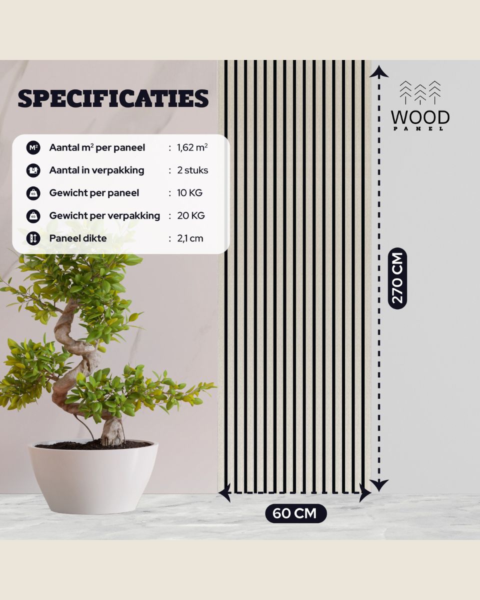 Akoestisch Wandpaneel 270x60 cm – Stijlvolle toepassing voor elk interieur