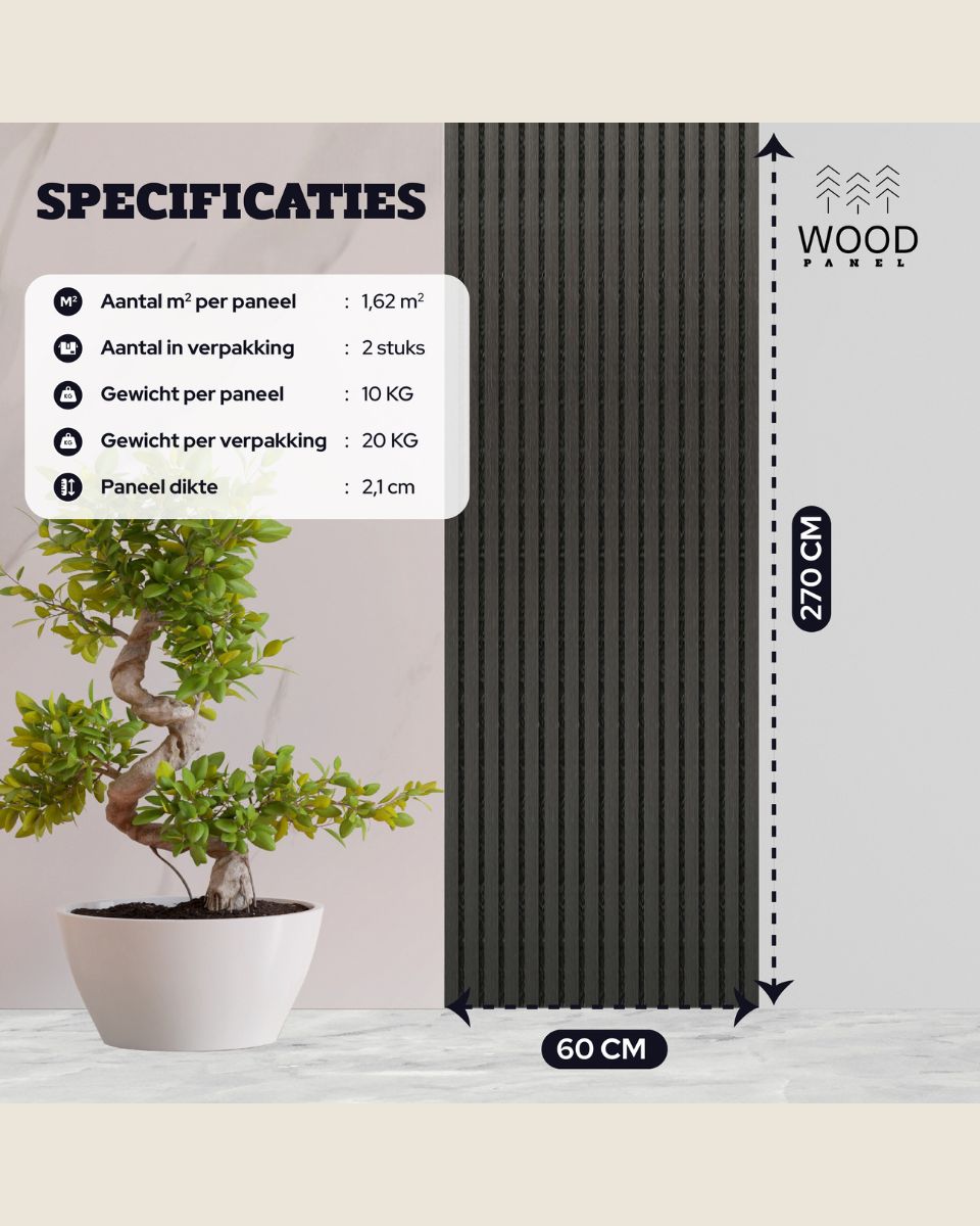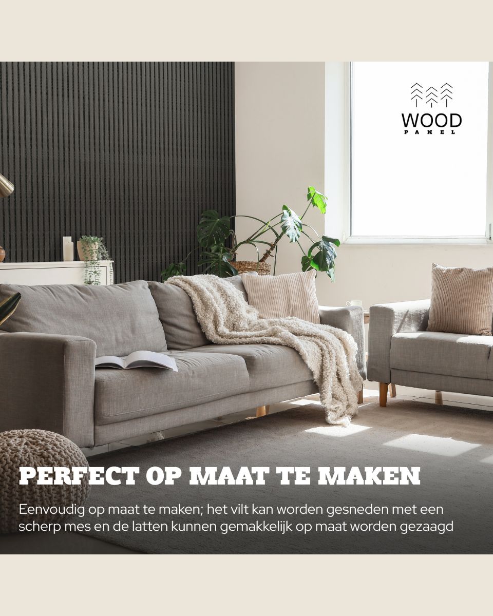 Ons akoestische wandpaneel van Woodpanel is 270x60 cm en is ontworpen om zowel de akoestiek als de uitstraling van elke ruimte te verbeteren. Dit hoogwaardige paneel biedt een effectieve oplossing voor geluidsoverlast en galm, wat het een ideale keuze maakt voor kantoren, woonruimtes, vergaderzalen, restaurants en werkplekken waar geluid een belangrijke rol speelt. Met zijn strakke en moderne ontwerp past het moeiteloos in diverse interieurstijlen, van minimalistisch tot industrieel.