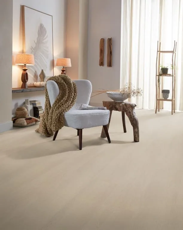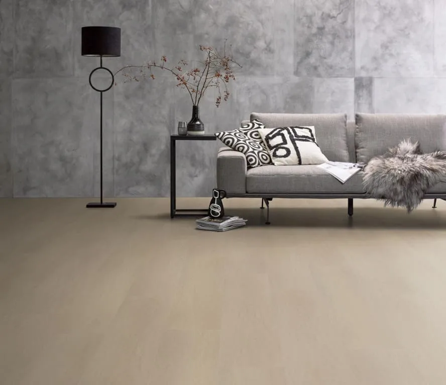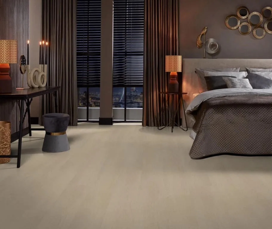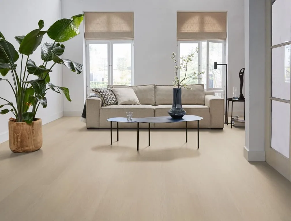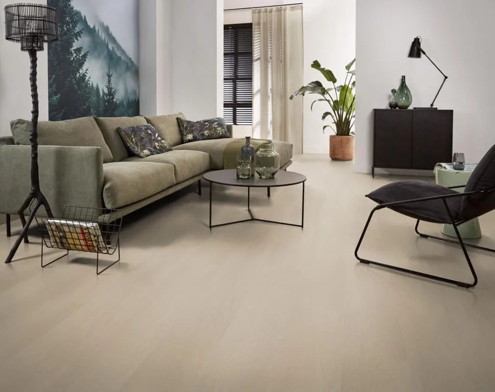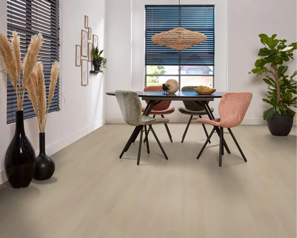 De Ambiant Estino Click SRC Beige PVC vloer voegt direct warmte en sfeer toe aan je interieur. Het natuurlijke patroon lijkt op een echte houten vloer. De lange planken van 152 cm creëren een ruimtelijk effect in je woning. Deze clickvariant heeft een 10 dB geluiddempende onderlaag, voor extra stilte in je huis.
