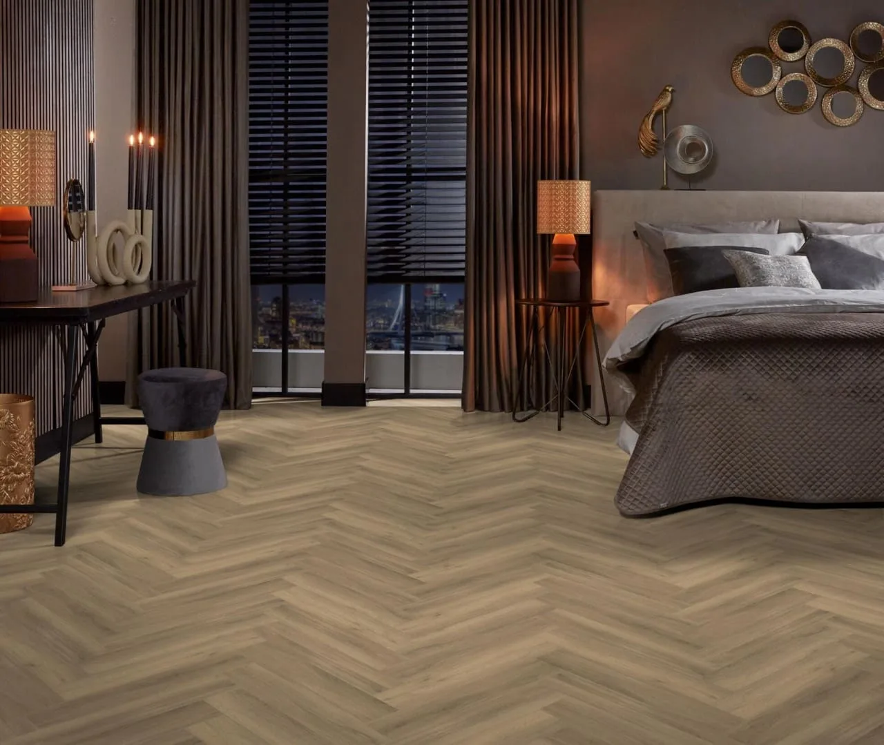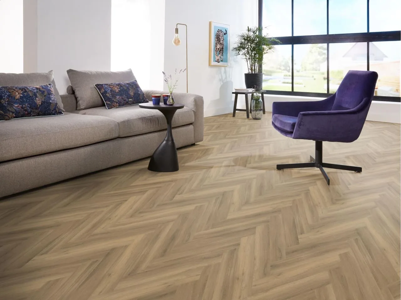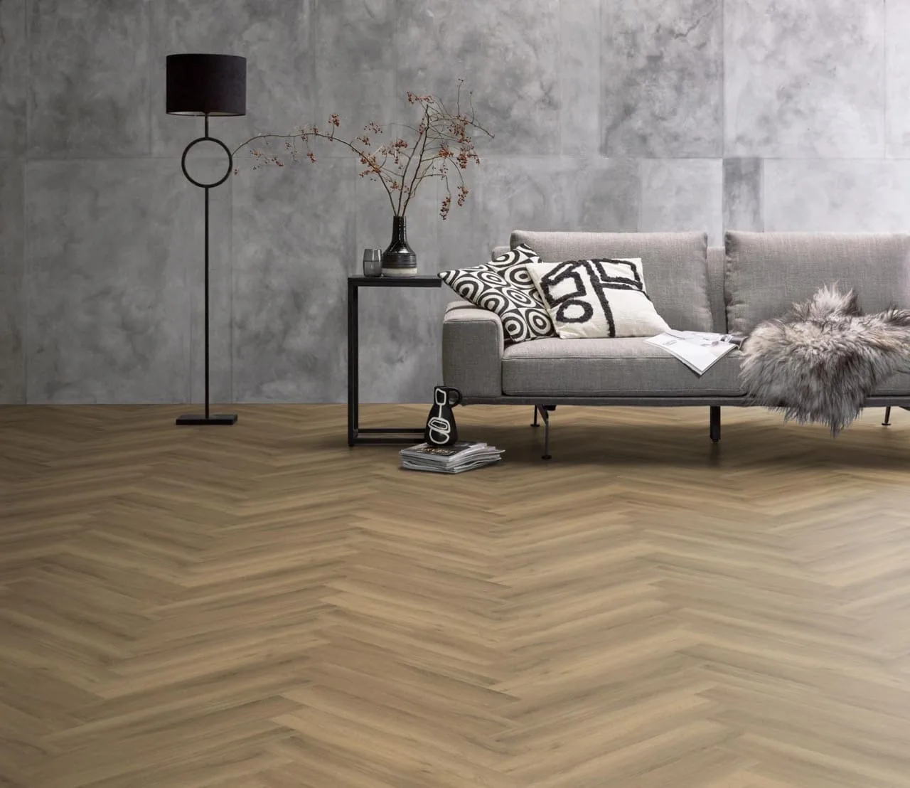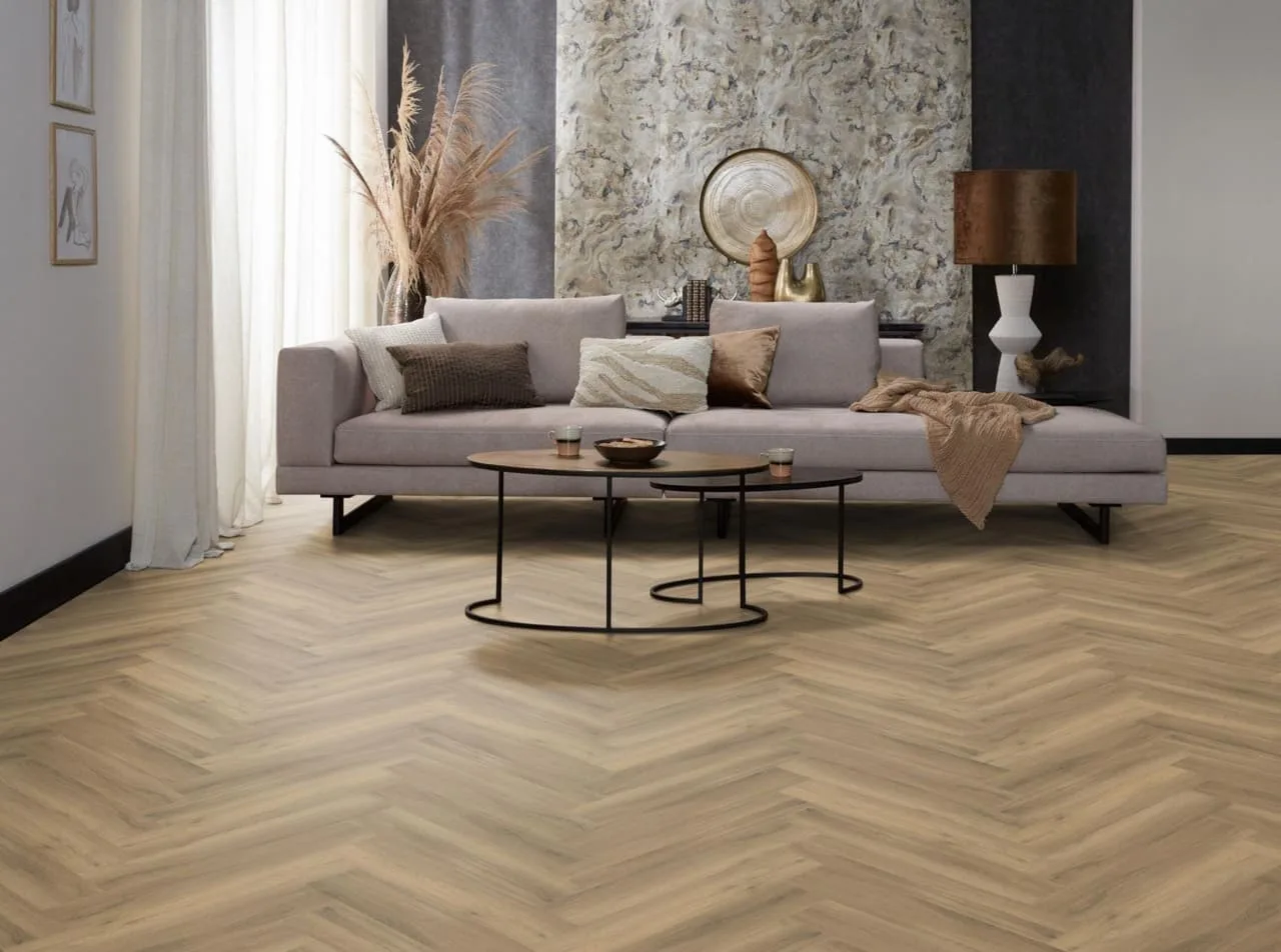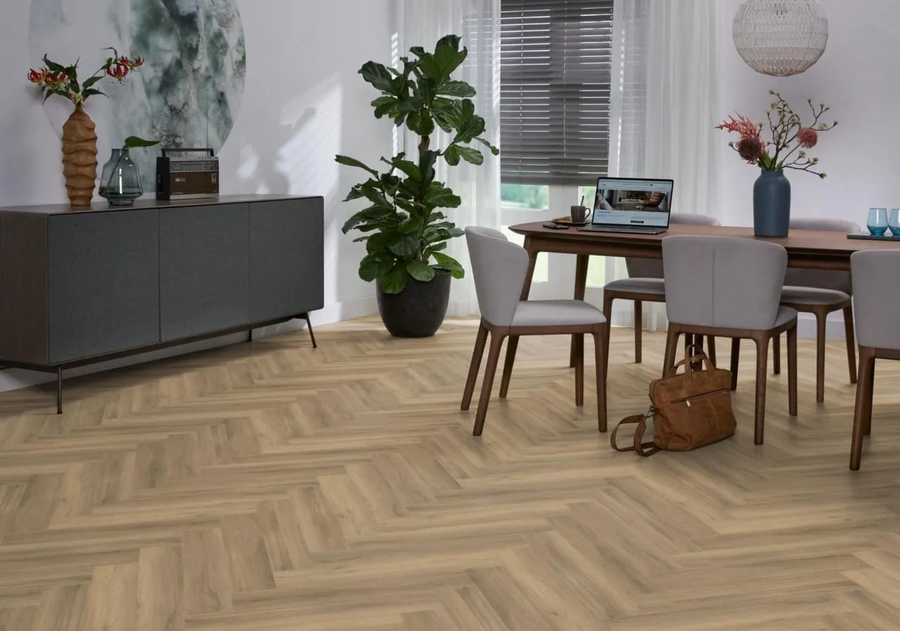 De warme en rijke uitstraling van hout vindt u prachtig terug in onze rustige en natuurgetrouwe visgraat pvc-vloer (EIR). Deze vloer is verkrijgbaar in zes kleuren, variërend van beige tot donkergrijs, en sluit daarnaast naadloos aan op meerdere decors in onze collectie traprenovatie. De stroken zijn afgewerkt met een extra matte toplaag van 0.55mm.