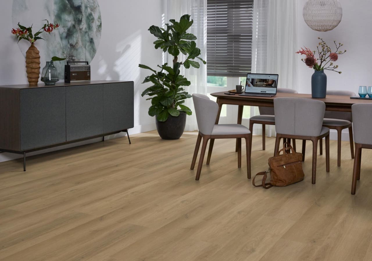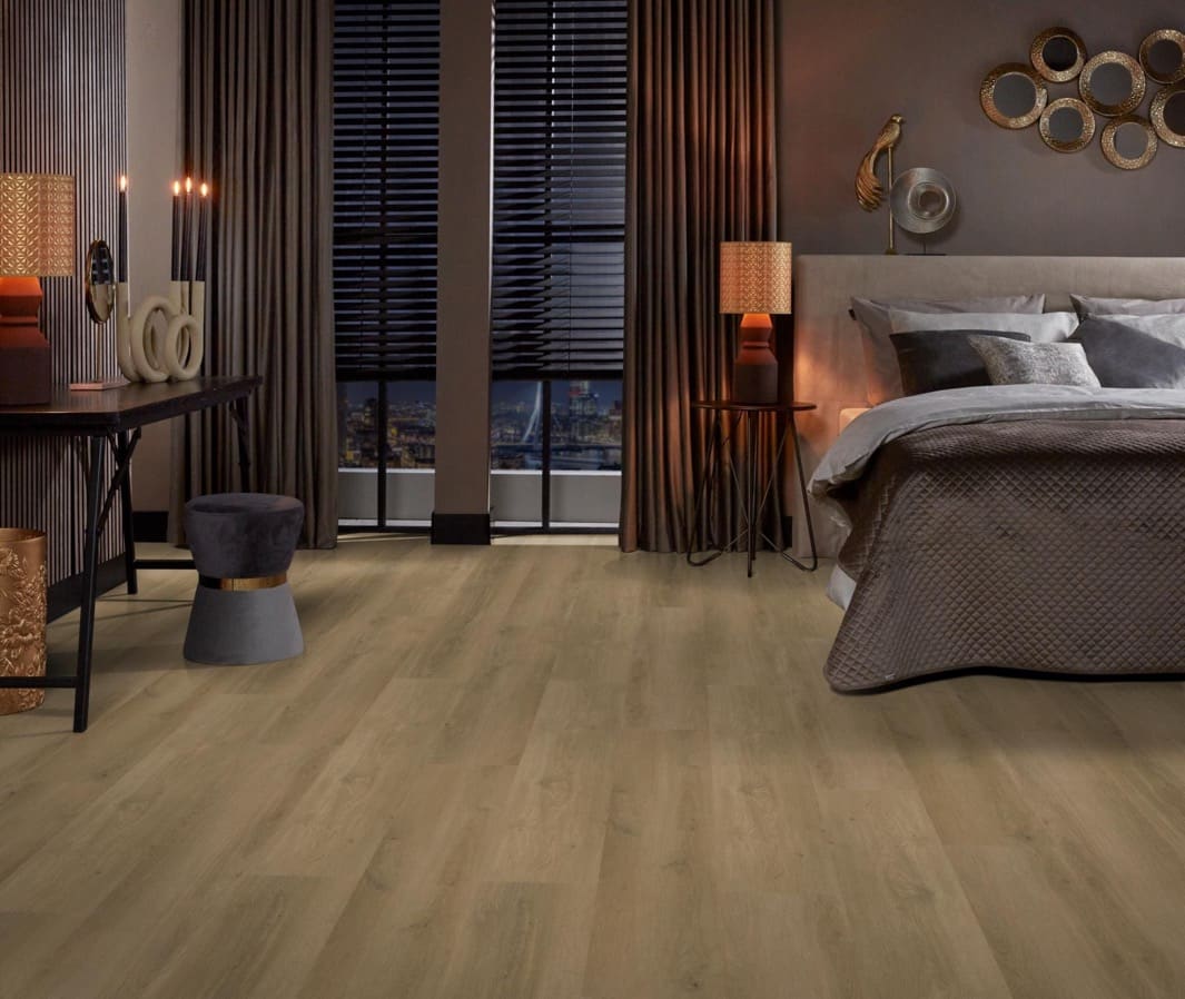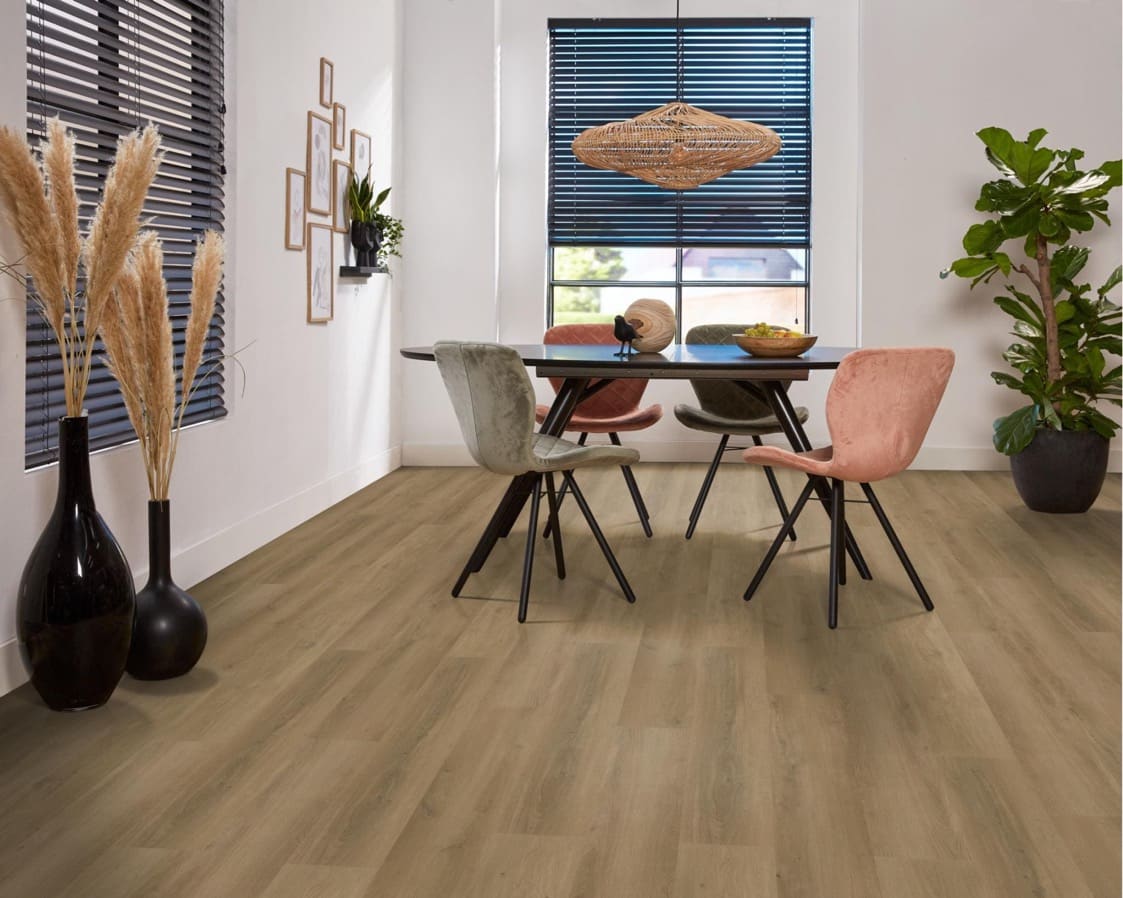 De Ambiant Espero Dryback Dark Oak PVC is de ideale keuze voor wie een vloer zoekt met een realistische houtlook die elk interieur compleet maakt. De extra lange planken van 152 cm geven jouw ruimte een ruimtelijk en luxe gevoel. Deze vloer is verkrijgbaar in diverse stijlvolle bruintinten die perfect aansluiten bij de nieuwste woontrends en zorgen voor een warme, natuurlijke uitstraling in je woning. Naast zijn mooie design is de Ambiant Espero ook functioneel. De vloer heeft geluiddempende eigenschappen, wat zorgt voor een stille en comfortabele leefomgeving. Hij is bovendien zeer sterk en duurzaam, waardoor hij jarenlang meegaat, zelfs bij intensief gebruik. Kies voor de Ambiant Espero Dryback Dark Oak en geniet van een onderhoudsarme, geluidsarme en stijlvolle PVC-vloer die perfect aansluit bij moderne interieurs.