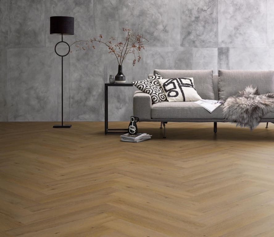 Ambiant Spigato Vivero visgraat dryback dark oak PVC