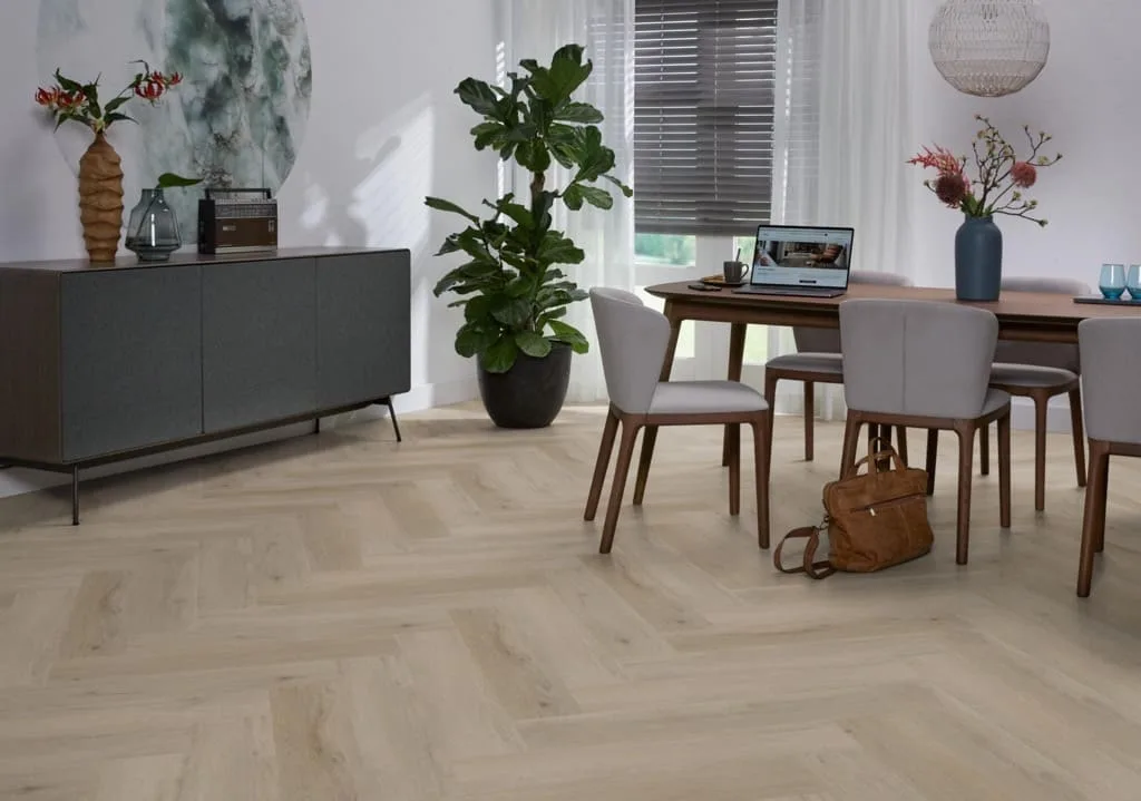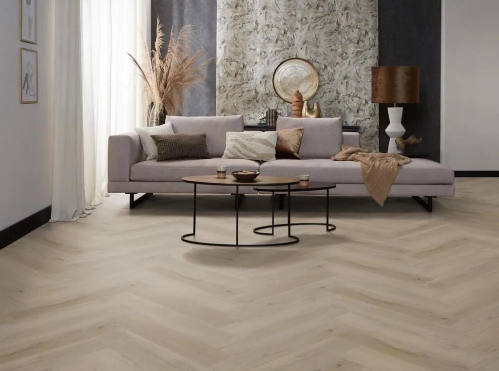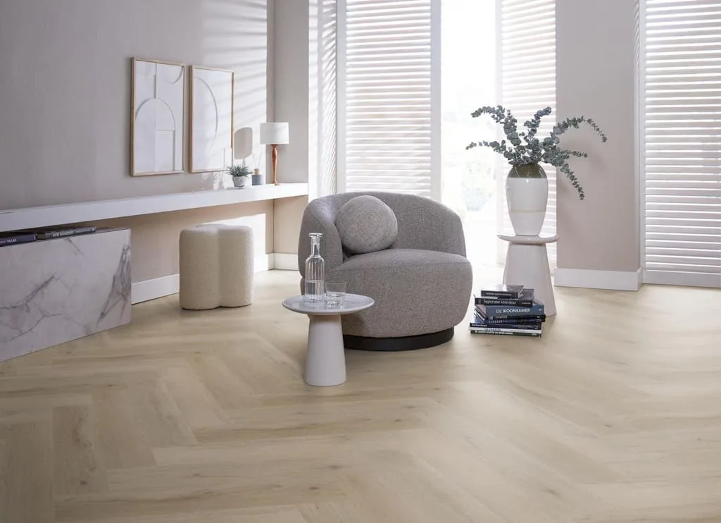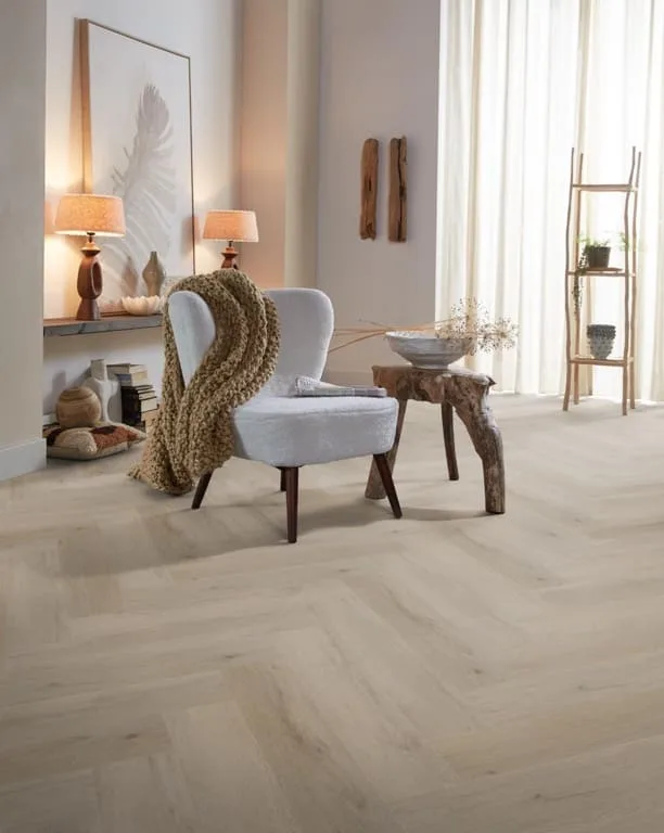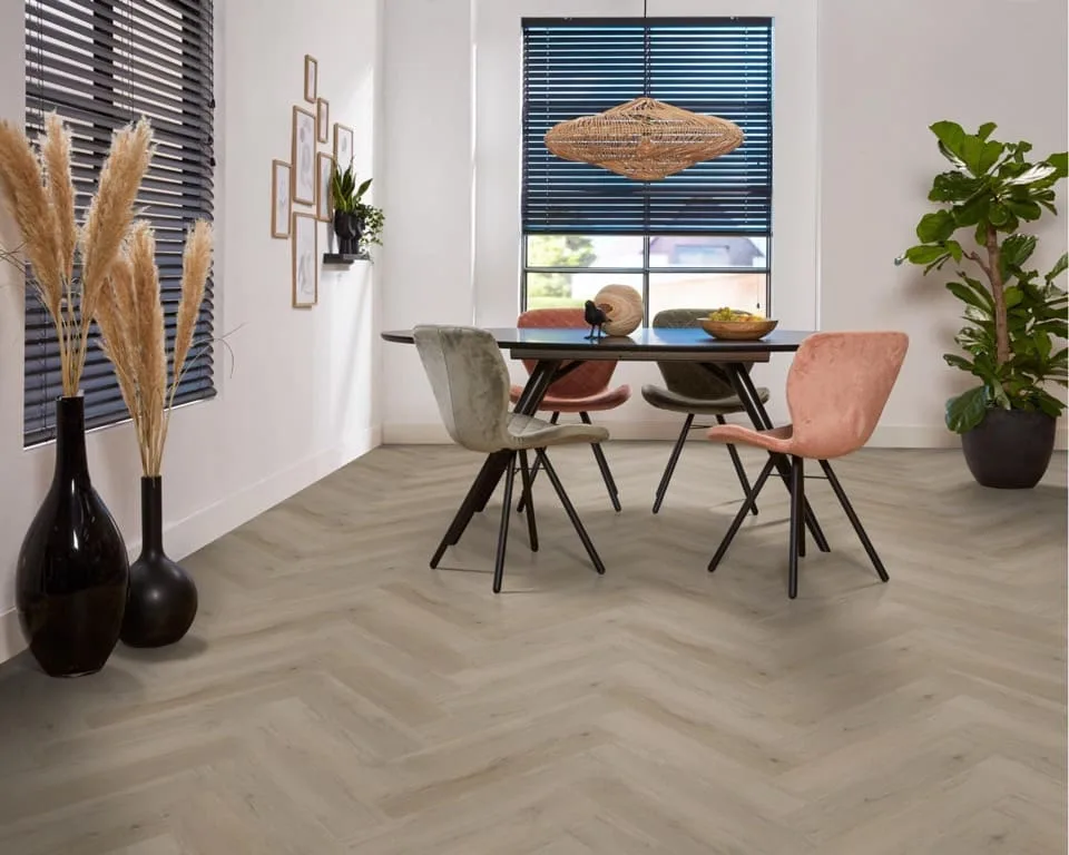 De Ambiant Spigato Vivero Visgraat Dryback Light Oak is een populaire visgraatvloer die perfect past in elke woonstijl. Deze vloer biedt een natuurgetrouwe houtlook met subtiele noesten, wat zorgt voor een warme en authentieke uitstraling.Met een sterke 0,55 mm slijtlaag is deze PVC-vloer krasbestendig en ideaal voor drukke huishoudens. De waterbestendige eigenschappen maken hem perfect voor vochtige ruimtes zoals keukens en badkamers.Daarnaast is deze vloer uitstekend geschikt voor vloerverwarming, wat zorgt voor een warme, comfortabele sfeer in huis.Kies voor de Ambiant Spigato Vivero Visgraat Dryback Light Oak voor een combinatie van stijl, duurzaamheid en praktisch gemak.