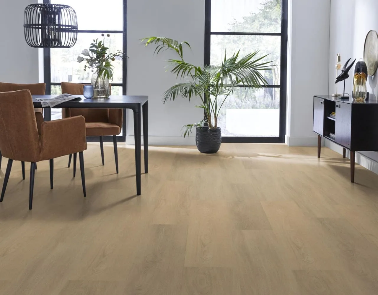 De Ambiant Viranto Dryback Warm Beige is een elegante PVC-vloer die opvalt door zijn rustige patroon en warme uitstraling. Met een natuurgetrouwe structuur die het houtpatroon prachtig nabootst, brengt deze vloer een gezellige sfeer in elke ruimte.Dankzij de duurzame 0,55 mm slijtlaag is de Viranto vloer uiterst sterk en bestand tegen dagelijkse slijtage, waardoor hij perfect is voor drukbezochte huishoudens. De natuurlijke kleuren van deze vloer maken het een ideale basis voor elk interieur, van modern tot klassiek.Kies voor de Ambiant Viranto Dryback Warm Beige en creëer een stijlvolle, onderhoudsvriendelijke leefomgeving in jouw woning.