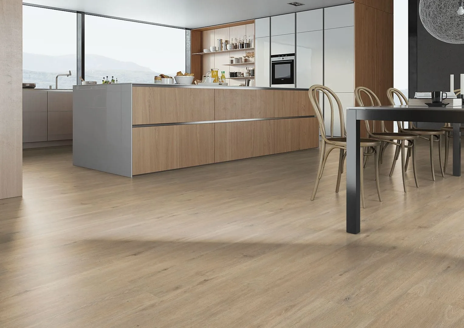 De Belakos Rustico Visgraat 50 PVC-vloer is een stijlvolle, duurzame vloer die perfect past in elk interieur. Met eigenschappen zoals waterbestendigheid, vuilafstotendheid en slijtvastheid is deze PVC-vloer ideaal voor drukbezochte ruimtes zoals de woonkamer, keuken en badkamer. De vloer heeft een realistische houtlook, dankzij de innovatieve register embossing techniek, die de uitstraling van echt hout nauwkeurig nabootst.Naast de elegante uitstraling biedt de vloer praktisch voordeel: hij is geluidsabsorberend en eenvoudig te onderhouden, wat zorgt voor een comfortabel en rustig woonklimaat. De Belakos Rustico Visgraat 50 staat garant voor een lange levensduur en onderhoudsgemak, zonder concessies te doen aan stijl en kwaliteit.Kies voor deze visgraat PVC-vloer en geniet van een luxe houtlook met de praktische voordelen van PVC: waterbestendig, slijtvast en onderhoudsarm.