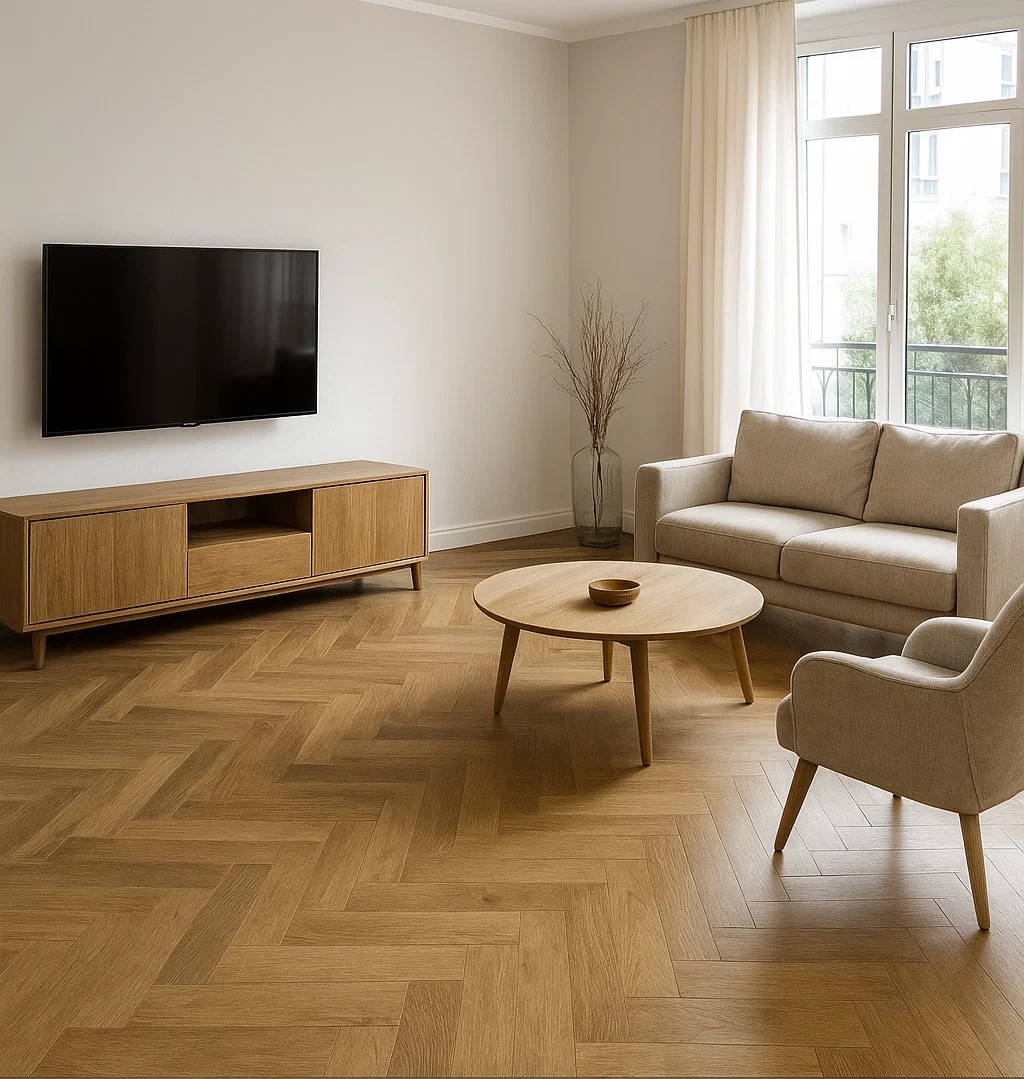 De 20000 Visgraat Plak Smoky PVC Vloer geeft je interieur een eigentijdse uitstraling met zijn koele, grijsbruine houtlook. De EIR-structuur benadrukt het realistische karakter van het visgraatmotief en past uitstekend in industriële of minimalistische interieurs.