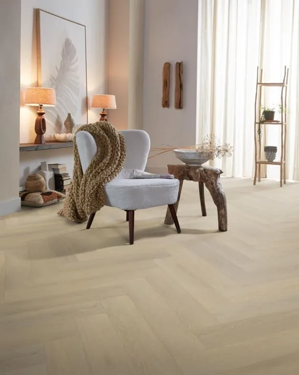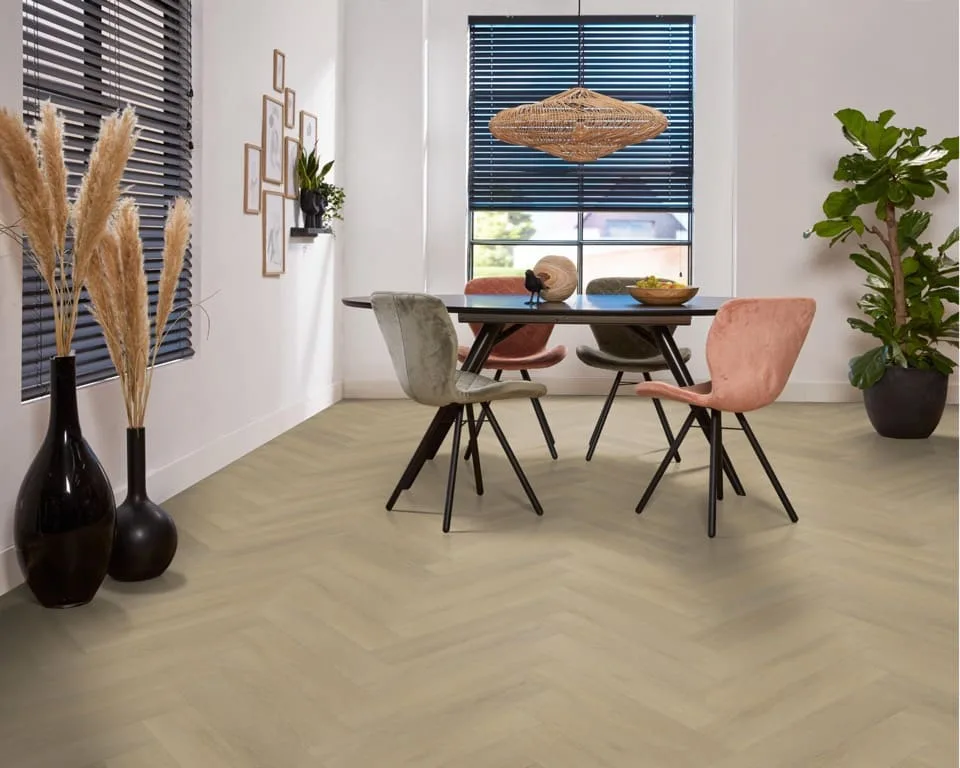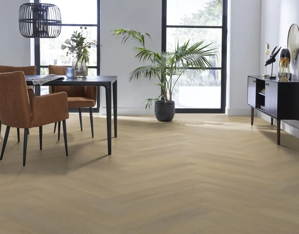 Als je van een patroonvloer houdt is deze kwaliteit echt iets voor jou! Het levendige visgraatmotief geven je interieur een prachtig klassiek karakter. Het patroon van deze vloer lijkt letterlijk op een visgraat, omdat elke plank loodrecht op de andere plank staat. Vanwege het waterbestendige karakter is deze vloer ook perfect voor in een keuken of hal.