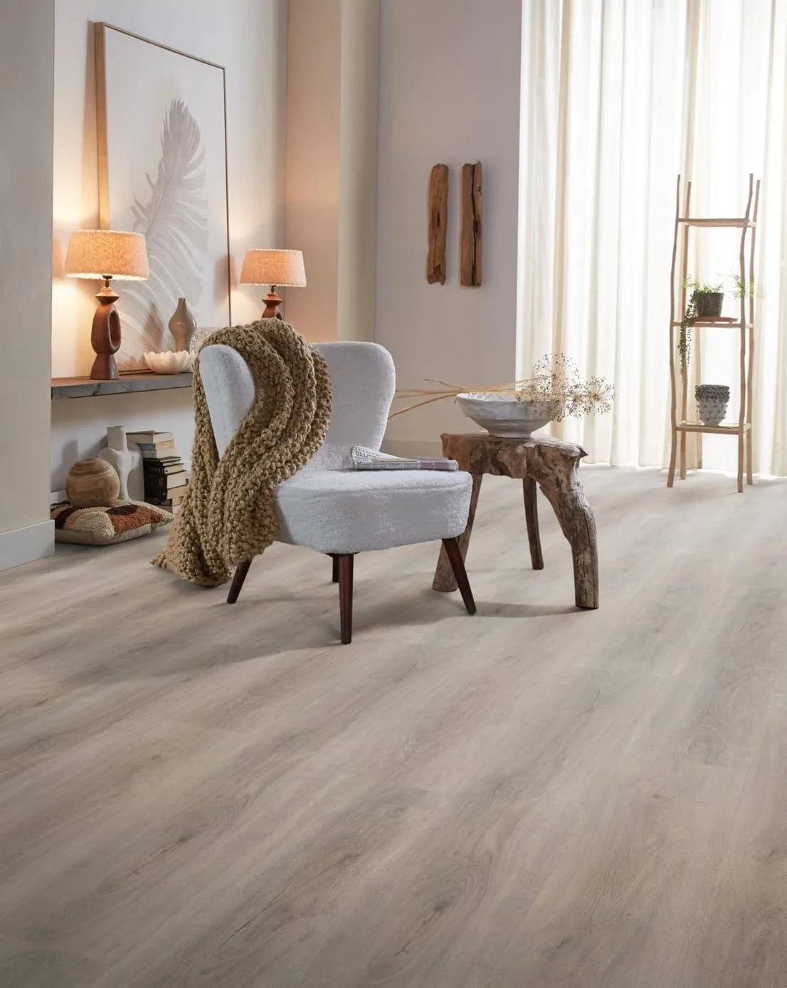 Deze prachtige pvc-vloer is te herkennen aan zijn extra brede en lange planken. De vloer heeft een natuurgetrouwe structuur die exact de houtprint volgt en heeft daarnaast een subtiele V-groef. Bovendien is deze vloer ook nog eens makkelijk in het onderhoud.
