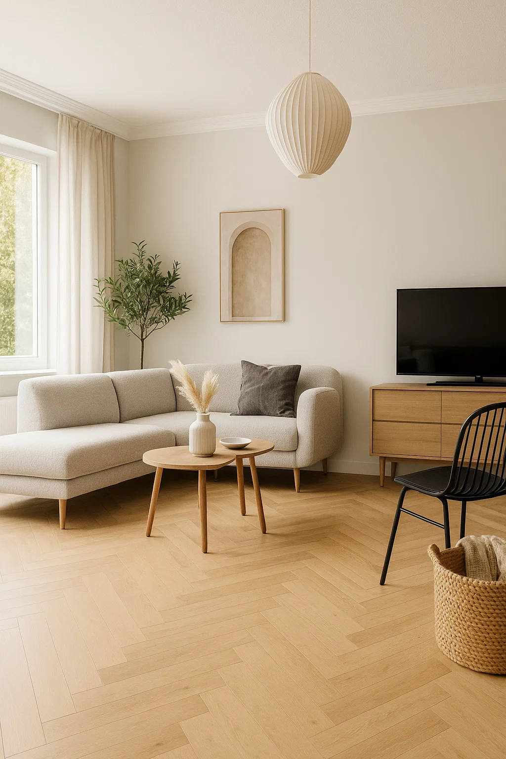 De Givefloors Pietra Visgraat 93 - Rigid Click PVC biedt een elegante naturel eiken kleur, met een verfijnd visgraatpatroon en 4 V-groeven voor een authentiek effect. De vloer heeft een dikte van 7 mm, met een lengte van 75 cm en breedte van 15 cm per plank, wat zorgt voor een robuuste en duurzame vloer. Dankzij de geïntegreerde ondervloer biedt de vloer extra geluidsdemping en comfort, terwijl de matlook en voelbare structuur zorgen voor een luxe uitstraling.