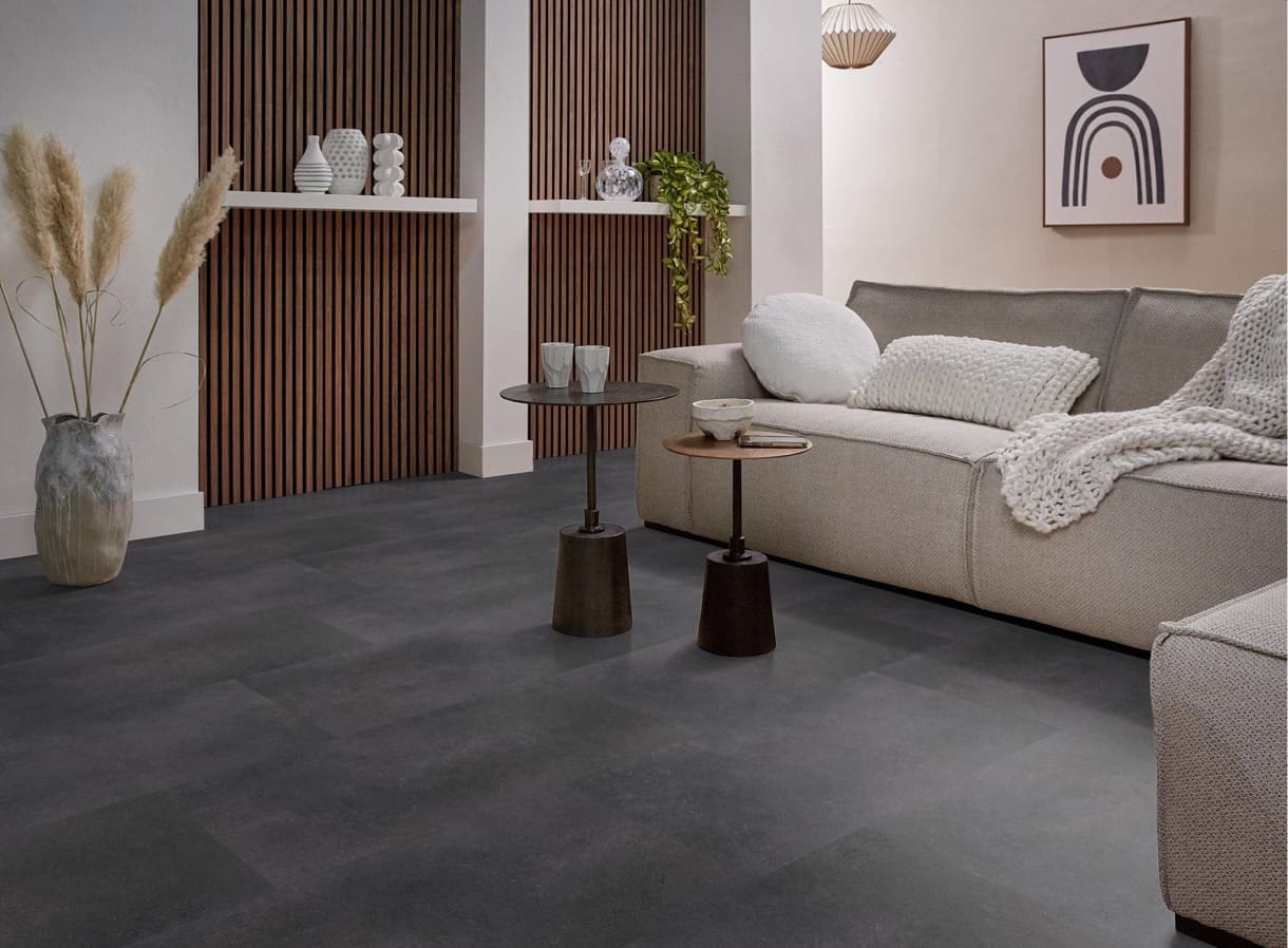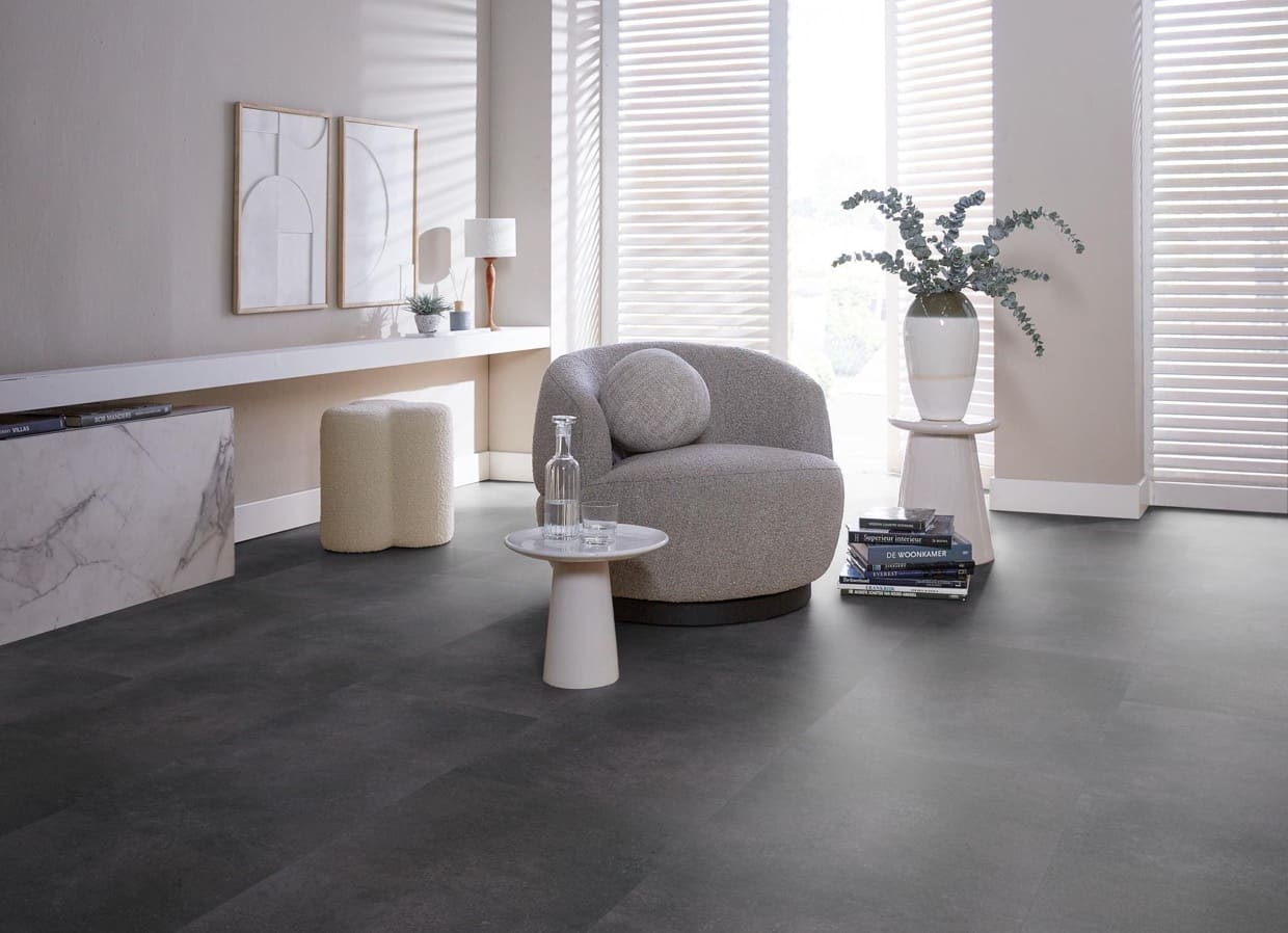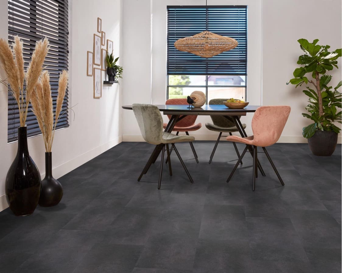 Ben je op zoek naar de uitstraling van een betonnen vloer in jouw huis, maar lijkt dat niet haalbaar? De Ambiant Sarino Click Anthracite biedt de perfecte oplossing! Deze PVC-vloer combineert een moderne betonlook met uitstekende functionaliteit. Dankzij de onderhoudsvriendelijke eigenschappen is de Ambiant Sarino Click Anthracite eenvoudig te reinigen, waardoor hij ideaal is voor drukbezochte ruimtes. Of je nu een gezellige woonkamer, een praktische keuken of een speelse kinderkamer wilt inrichten, deze vloer is veelzijdig en praktisch. Bovendien is de Ambiant Sarino Click Anthracite ontworpen met kindvriendelijkheid in gedachten. Je hoeft je geen zorgen te maken over krassen of vlekken; deze vloer kan tegen een stootje. Geniet van de perfecte mix van stijl en gebruiksgemak met deze prachtige vloer! Kies voor de Ambiant Sarino Click Anthracite en geef jouw interieur een moderne, industriële look die voldoet aan al je wensen.